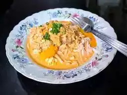 ✨ Anyone visiting the Kudi Jeen community... stop by and try the legendary "Khanom Jeen with Roasted Chicken Curry," a delectable dish.