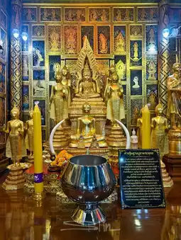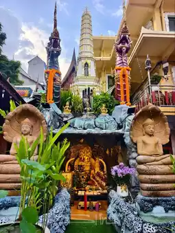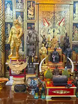 #GetDiscountsWithoutLuck #SililTrip #BeautifulTemplesAroundThailand This temple was built during the Ayutthaya period and was originally named Wat Ko. It is a third-class royal temple, Worawihan type, and was completely renovated by King Rama I. The temple's architecture blends Thai and Chinese styles, signaling the prosperity and friendship between the Thai-Chinese trading communities of the time. Another highlight of this temple is the place where people pay respects to "Khun Mae Boonruen Tongboonterm," a laywoman who practiced morality and virtue. She is believed to possess the power to help others achieve success. Those who visit will receive guidance and guidance on the proper worship ritual.