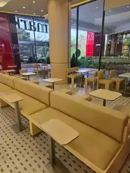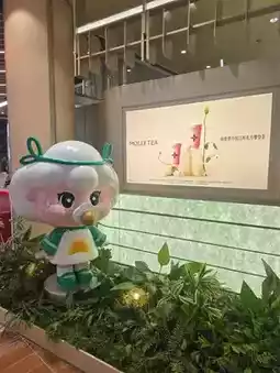 The shop is decorated in a soothing beige color. There's a seating area and the shop's mascot. Besides enjoying delicious tea, you can also take photos.