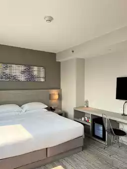 The room itself is compact but well-equipped. True to the Hyatt brand, everything you need is provided without having to request anything extra from housekeeping. The amenities meet 4-star hotel standards (some 5-star hotels don't even provide a complete set). The King-size bed is quite soft but very comfortable. The bathroom is adequately sized with strong water pressure, which I really liked.
