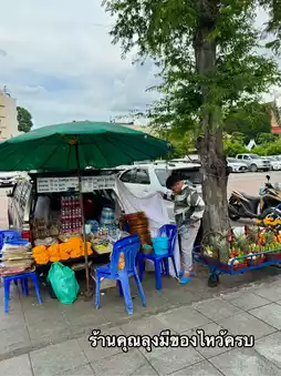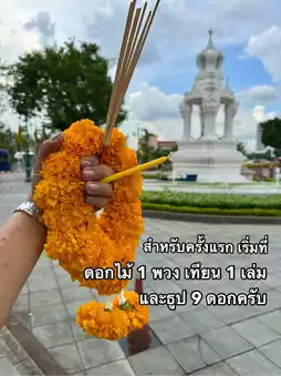 Lotus flowers, incense, candles, robes, five types of fruit (preferably young coconuts and bananas), betel nuts, cigarettes, water, milk, red sago syrup, rice, boiled eggs, puffed rice, seven types of desserts, three small pieces of silk, and yellow or orange flowers. When the offerings are complete, place them on a white cloth. Then, light 21 incense sticks and nine candles, and chant a prayer to Mother Earth.