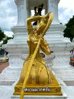 The Goddess of Earth is the Mother of the World, the Goddess of the Earth, or the protector of the land. Her artistic depiction of the Goddess of Earth is that of a large yet graceful female deity with an oval face and a gentle smile, symbolizing her calmness and composure. The history of the Goddess of Earth is told in Buddhist history. It is said that during the Buddha's striving for enlightenment, he encountered the Mara kings. The Mara kings devised various schemes to incite the Buddha's desires and lusts, but the Buddha was neither pleased nor displeased. At that time, Mother Earth performed a miracle to subdue the demons by squeezing her hair, causing water to flow out and flood them, defeating them. This is the origin of the image of "Mother Earth Squeezing Her Hair" or "Uthokthan" posture, which means giving alms of water or giving water as a Dharma offering.