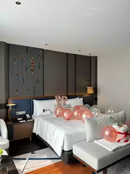 The hotel's interior design is contemporary with a touch of Thai culture, incorporating the craftsmanship of the '10 Thai Artisans' by adapting traditional weaving and fabric patterns as the design concept. Overall, it exudes luxury, befitting the InterContinental brand.