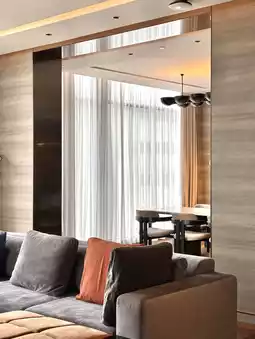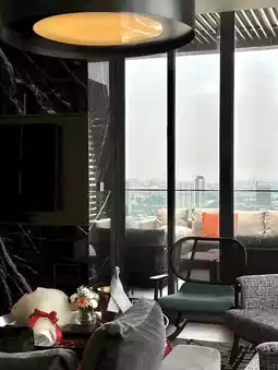 The second zone is the large living room. Upon entering the suite, this is the first area you’ll see. It’s a space for relaxing or socializing with friends and loved ones, complete with large glass windows offering an unobstructed view of the Sukhumvit cityscape. This zone provides the best view in the suite.