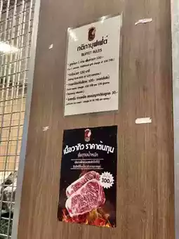 The buffet menu offers a variety of prices, starting at 328 baht per person, including drinks. Higher prices offer a wider variety of ingredients. Enjoy a 120-minute meal with unlimited pork, fresh vegetables, dipping sauces, and appetizers. Some menu items also have a scan-and-order option.