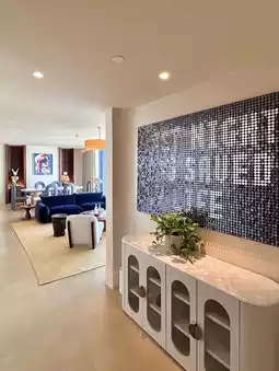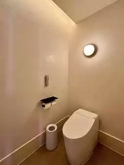 The room is perfectly proportioned, and there's a kitchen that's fully equipped with Gaggenau cookware. What I particularly like is the hotel's serious investment in the in-room sound system. This room uses high-end speakers like the Devialet Phantom II 95 dB and B&O Beosound Stage, which provide excellent sound quality.
