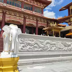 Fo Guang Shan Temple is a Theravada-Mahayana Buddhist temple, a branch of the temple from Taiwan. It offers meditation retreats and is open Tuesday through Sunday. Inside, Fo Guang Shan Temple, visitors can pay respects to sacred objects and Chinese deities for prayers. The temple includes the Ubosot (ordination hall), the Lokitesvara Shrine, the Buddha's Radiance Stupa, a Vipassana meditation hall, a dining hall, and Buddhist classrooms.