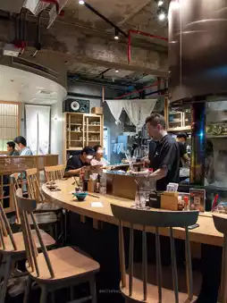 The interior is decorated with natural wood. A long counter bar allows customers to watch the chefs prepare noodles. The sound of boiling water and the aroma of warm soup make you feel like you've escaped to a small Japanese alley. The warm lighting and limited seating make it perfect for taking your time with the bowl of udon in front of you.