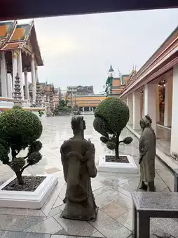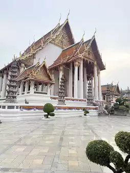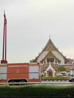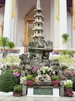 Located on Bamrung Mueang Road, King Rama I (Rama I) intended to build a viharn (wihan) comparable in size to the viharn (wihan) of Wat Phanan Choeng, a symbol of the city. He named it Wat Maha Sutthawat, but before its completion, King Rama II passed away. King Rama II continued the work and named it Wat Suthat Thepwararam. Unlike other temples, Wat Suthat lacks a chedi, replacing it with the Satta Maha Sathan (Utesika Chedi), representing seven important trees in Buddhism. Interesting features of the temple include: Phra Sri Sakyamuni (Luang Pho To), the principal Buddha image of the temple, which was brought from the Vihara Luang of Wat Mahathat in Sukhothai, and the door panels of the Vihara, which are exquisite works of art from the Rattanakosin period, especially the pair carved by King Rama II, are currently preserved in the National Museum, Bangkok. - The Giant Swing, located near Wat Suthat Thepwararam. The construction of the Giant Swing stemmed from the strong connection between Brahmanism and Thai culture. After the completion of Bangkok, a Brahman temple and the Giant Swing were built. Originally located on Bamrung Mueang Road, the road leading to Dinso Road, it had been in existence since 1784 and moved to its current location during the reign of King Rama V. Later, during the reign of King Rama VI, the Louis T. Leonovans, a lumber company, donated teak logs to build a new Giant Swing. En: Completed on April 12, 1920, repaired in 2005, it is 21 meters high. This giant swing is used in the Triyampawai or Brahman swing ceremony, held in the second lunar month of every year and was discontinued in 1935. It is open daily from 8:00 AM to 5:00 PM, but visitors can visit until 8:00 PM. If you are into superstition, we recommend coming to make merit by Luang Por Klak Fin before 5:00 PM. Prepare 55 or 50 baht, put 5 baht in the donation box, put it on a tray, light incense and candles, and pray for forgiveness. Then, place a lotus flower in a pot and put the money in the tray in front of Luang Por Klak Fin. There are staff members waiting to advise you. #Get a discount without relying on luck #Bangkok #Thai temple