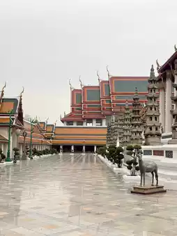 Wat Suthat Thepwararam, commonly known as Wat Suthat, is a first-class royal temple of the Ratchaworamahaviharn type, one of only a few in Thailand. It was designated the royal temple of King Ananda Mahidol, the Eighth King of the Chakri Dynasty. Located in the inner city, the temple's most notable landmark is the Giant Swing (Giant Swing) in front of the temple.