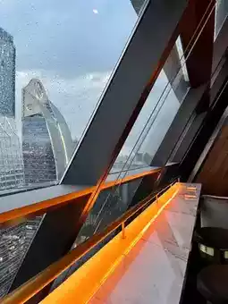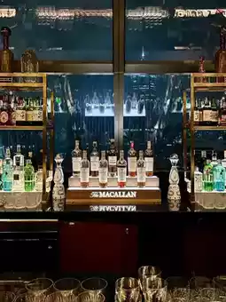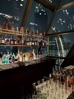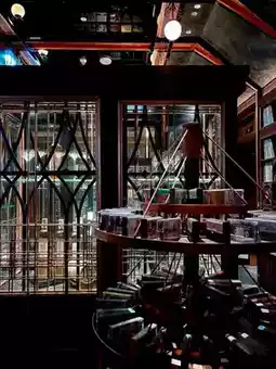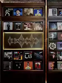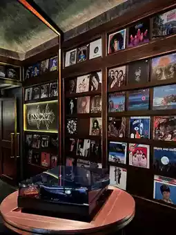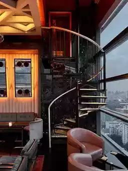 Lennon’s, a bar located on the 30th floor of the Rosewood Bangkok hotel, is designed with a 1970s concept inspired by mid-century home recording studios. The bar boasts a collection of over 6,000 vintage vinyl records that guests can request the DJ to play or even purchase to take home. A spiral staircase leads to an upper cigar lounge.
