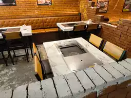 The interior is beautifully decorated with bright orange bricks, creating a comfortable atmosphere. The air conditioning is cool and comfortable.