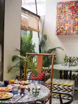 I've had this place on my map for a long time, and finally had the chance to stop by! But we're here for a staycation and breakfast 🥐🥗 at the Siam@Siam Design Hotel Bangkok. I have to say I'm so happy! The breakfast was delicious! 😝 The staff were friendly and welcoming! 💕 The cafe is beautifully decorated, almost like a mini art gallery. It's so bright and vibrant! 🥳 Every corner has a cozy table. Photography enthusiasts will love it! 📸 Oh, and there's even a game arcade on the second floor! 🎮