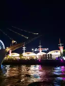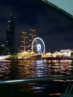 ✨️ ASIATIQUE's atmosphere is quite lively in the evenings, with a large number of international tourists. The restaurant lights reflect off the river, creating a romantic and warm atmosphere. There are beautiful photo spots, including the large ASIATIQUE Sky Ferris wheel, offering panoramic views of the Chao Phraya River and Bangkok. Alternatively, enjoy a drink on the terraces of several restaurants offering riverside views with soft music.