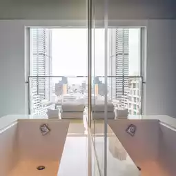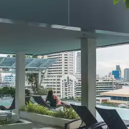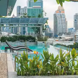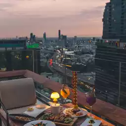 When it comes to hotels with rooftop bars in the heart of Sathorn, the number one spot is The Roof 38th Bar at Mode Sathorn Hotel Bangkok. This luxurious hotel in the heart of the city boasts a rooftop bar with a 180-degree view, allowing you to experience the city's nightlife, including the lights, buildings, and the beautiful Chao Phraya River curve right in front of you, unobstructed. The bar serves drinks, food, and desserts, and is open daily from 6:00 PM to midnight. The hotel also boasts a beautiful swimming pool, a great lunch buffet, comfortable beds, and a stunning bathtub. Stay at Mode Sathorn for a night and you're guaranteed to wake up feeling 10000000% happy.
