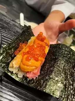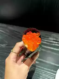 As soon as I bit into it, my first impression was the salty, rich flavor of the ikura roe that popped in my mouth. This was followed by the sweet, mellow, and chewy texture of the fresh, sea-fresh amaebi shrimp, contrasting with the slightly sour flavor of the perfectly seasoned sushi rice.
