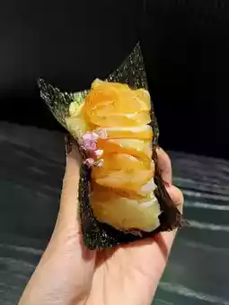 "At the counter, everything looked simple, yet it was filled with meticulous care. The chef handed me the third hand roll in the set: 'Amaebi (sweet shrimp) with salmon roe.' The seaweed was still crisp, with a slight 'creak' sound before it entered my mouth.