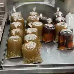Auntie Wan's shop is located on Banthat Thong Road. Across from Chulalongkorn University's Centennial Park, this long-established dessert shop offers a wide selection of hot and cold soy milk, fresh milk tofu pudding, fresh milk grass jelly, bua loy dumplings, and longan tao tung. 😋