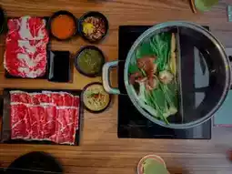 🥬 Fresh vegetables, shrimp, crab sticks, tofu, and udon noodles are unlimited, making it perfect for a relaxed meal with friends or family. For dessert, the green tea and vanilla ice cream are definite highlights 🍦💚.