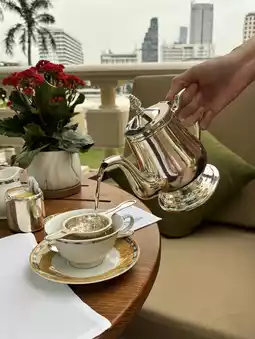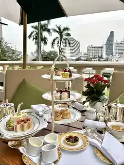 Enjoying an afternoon tea at The Lobby of The Peninsula Bangkok Hotel is a classic and luxurious experience. The riverside ambiance along the Chao Phraya River is a highlight of this hotel. Relax in the spacious and airy lobby while admiring the river view and watching boats pass by, creating a truly soothing atmosphere. If the weather isn't too hot, sitting on the outdoor terrace is equally delightful.