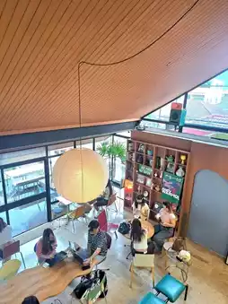 บรรยากาศในร้านดูอบอุ่น เป็นกันเอง มีที่นั่งหลายโซน เหมาะสำหรับมานั่งทำงานชิลล์ๆ หรือจะมานั่งเม้าท์มอยกับเพื่อนก็ดีไปหมด เมนูเครื่องดื่มและอาหารก็น่าสนใจไม่แพ้กัน ใครเบื่อคาเฟ่โทนขาวดำแล้ว ลองมาร้านนี้รับรองว่าได้รูปคอนเทนต์เพียบ!