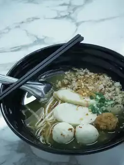• 🌶️ The recommended dish is the "Tom Yum Fish Ball Noodles," available in both soup and dry versions. It offers a perfect balance of sour, spicy, salty, and sweet flavors in one bowl, complemented by fragrant roasted peanuts and crispy fried garlic.