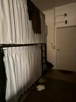 Her Female Hostel is a hostel for women near Don Mueang Airport. It's perfect for waiting for your flight, as it's within 10 minutes. Or, if you don't have a lot of luggage, you can walk to the airport via the overpass. For my first time here, it was perfect. My room was on the second floor of the building. The beds were clearly divided into zones, with curtains and towels. I got the top bunk, which had a storage area for my belongings, a charger, and a dedicated light for that bed. The mattress was comfortable and not too hard. The blanket was very warm. I loved it!