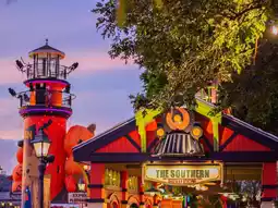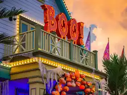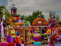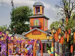 This charming European-style village is adorned with giant pumpkins, skeletons with bows, and a host of ghostly friends under the concept "Spooky But Sweet" (Scary yet Adorable)!