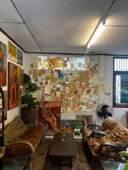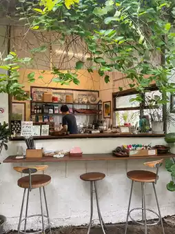 If you're looking for a cafe that feels like you're relaxing in an artist friend's home, "Yoo | Kap | Ban" Cafe in Soi On Nut 17 is the perfect answer. 🍃 This small cafe, nestled amidst lush trees, offers a peaceful atmosphere, surrounded by art, vintage audio equipment, and charmingly displayed collectibles. It feels like you've been transported to a world of creativity and simplicity at the same time. There's both a homey indoor seating area and a shady outdoor area by the canal, perfect for light work or chilling with friends on a day off. 🍰 Recommended menu items include jasmine latte, fruit soda, and delicate homemade cakes. Prices range from around 60–120 baht. The service is warm and friendly, as if you're inviting yourself to relax. ☕
