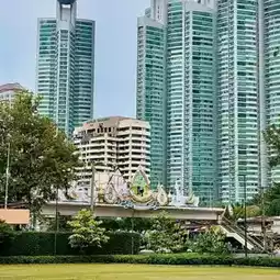 A large rooftop garden area of approximately 7 rai, considered one of the largest in Bangkok, is located within the Dusit Central Park project on the rooftop connecting Silom and Rama IV.