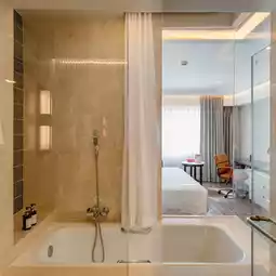The rooms are spacious, clean, and smell wonderful from the moment you step inside. 💐 The view from the windows is breathtaking, with some rooms even featuring bathtubs for a relaxing soak. 🛁 24-hour room service is available, so if you're looking for a late-night escape, don't worry! 🍜