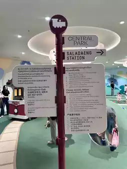 😀 Indoor Zone - on the 5th floor of Dusit Central Park, this indoor playground features a Saladaeng Railway theme. Kids can ride on a train and run along the tracks, as well as a trampoline, a slide, and a climbing area, complete with tunnels. This zone is much larger and more accessible than the outdoor playground, perfect for older children.