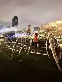 The River Lawn is a riverside playground on the Chao Phraya River, located at Asiatique. If you board the boat at Asiatique, turn right and keep walking until you reach the Hatch Dome. The playground is opposite the Hatch Dome. It's a spacious area with plenty of space for parents to relax and watch their children play. The atmosphere is great, and the playground equipment is quite fun for the kids. They had a blast! #asiatique