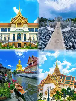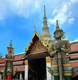 ✔️The corridor of the Temple of the Emerald Buddha (golden pillars + blue sky background is stunning)