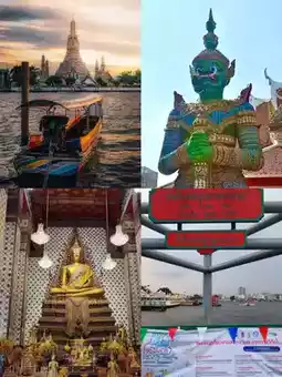 Wat Arun Ratchawararam, commonly known as "Wat Arun," is one of Bangkok's most stunning symbols located along the Chao Phraya River. In the morning, the first rays of sunlight illuminate the grand pagoda, making it shine brilliantly, while in the evening, the sunset paints the river in golden hues, creating an incredibly romantic atmosphere. 🌅