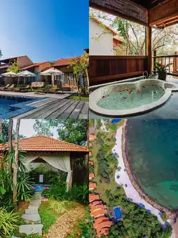 Relax in the shade of the trees. "Poomjai Garden" with its beautiful wooden pavilions 🌿☕️