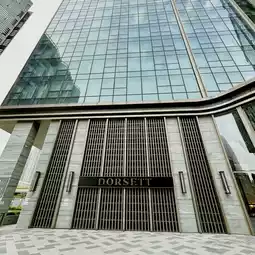 Located on the expressway, Pradit Manutham Road, this cafe offers ample parking. The shop features clear glass and orange tones, contrasting with the shady trees outside. There's plenty of seating inside.