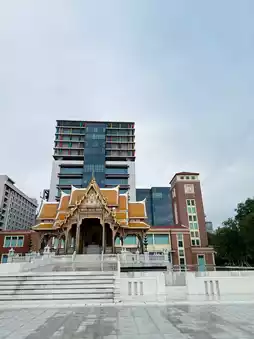 A landmark along the Chao Phraya River that many may not yet be familiar with. However, once you see it in person, you'll realize its charm and historical significance. This pavilion is located within Siriraj Hospital and was built to honor and commemorate King Bhumibol Adulyadej. The design combines traditional Thai elegance with modernity, featuring a striking golden spire that reflects sunlight beautifully. Especially during the evening, when the soft sunlight glimmers on the Chao Phraya River, the atmosphere becomes even more enchanting and warm.