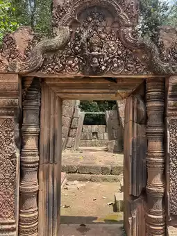 #banteaysrei #angkortemples #pinksandstonetemple #cambodiahiddengems #templeofbeauty #ancientartistry #angkorwonders #culturalheritage #travelcambodia #mythicalcarvings