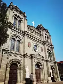 Originally built in 1898 and known as the "Church of St. Peter and St. Paul," this church was constructed by French Catholic missionaries. Located in the heart of Baoding City, it stands as a quintessential example of Western architecture. Measuring 54.3 meters long, 17.6 meters wide, and 20 meters high, the church is an imposing and elegant structure in the Romanesque style, with a capacity exceeding 1,000 people. Inside, 14 towering red columns support the roof, complemented by 12 meticulously carved white marble columns at the front, symbolizing the 12 apostles of Jesus Christ. Adorning the side walls are 14 exquisite biblical paintings depicting the suffering and crucifixion of Jesus. The expansive dome and open space create a solemn and sacred atmosphere within the church. Whenever the organ plays, ethereal sacred music resonates throughout the entire space, fostering a deeply reverent and holy religious ambiance.