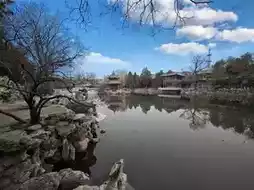 The Ancient Lotus Pond currently occupies an area of 35,000 square meters. Its overall layout centers around a pond, with classical buildings in both northern and southern styles, such as pavilions, terraces, and towers, encircling the water. The Ancient Lotus Pond's famous "Twelve Scenes" comprise the following: Zaoyong Tower, Pianliu Cave, Hancang Pavilion, Chunwu Slope, Gaofen Pavilion, Wanjuan Tower, North Thatched Cottage, Wanhong Pavilion, He Chai, Rui Zhuang Abode, Yitang Hall, and Hanlv Xuan. The garden is renowned for its shimmering waters, ancient entwined vines, weeping willows, schools of fish, and the pervasive fragrance of lotus blossoms.