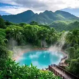 Tropical Rainforest Setting: Surrounded by a lush tropical rainforest, the hot springs area boasts fresh air and beautiful scenery, allowing visitors to immerse themselves in nature's charm while enjoying the springs. 💦