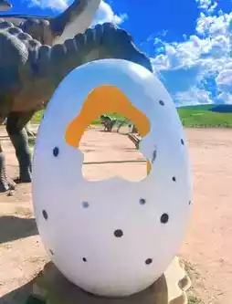 As soon as I stepped into the dinosaur area of Wulanhada Volcano Geological Park, a giant long-necked dinosaur shadowed me 🦕! Their brownish-yellow skin was warm from the sun, and their necks bobbed up and down as if greeting the clouds. I crouched behind a cracked dinosaur egg prop and deliberately poked my head out of the shell’s opening. The travel photographer laughed and snapped the shot: "This is the 'Jurassic little monster' hatching scene!" Nearby, mini dinosaurs wagged their heads and tails, brushing against my pant legs with a "prehistoric warmth." I couldn’t help but reach out to touch their rough backs, as if I was really feeling the winds from millions of years ago 🌪️.