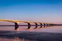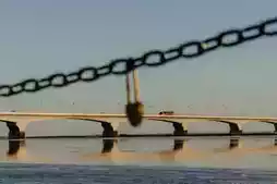 - At sunset, golden light bathes the bridge, warm and magnificent