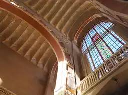 If you go up the stairs of the building with the exit, you can see the Sagrada Familia in the distance.