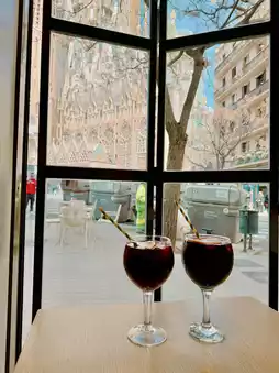 This is a great place to sit in a cafe and leisurely enjoy the beautiful Sagrada Familia. It's not expensive, and I enjoyed sangria here, and the atmosphere was great and I was satisfied. It's a cafe where you can see the Sagrada Familia more beautifully on a clear day, so if you go to Barcelona, I recommend visiting here. #SagradaFamilia #BarcelonaTravel