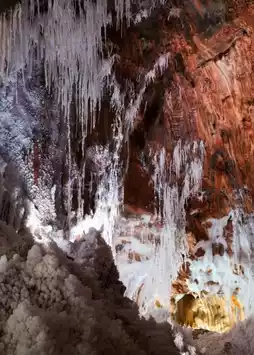 A glittering underground palace straight out of *Frozen*.