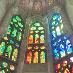Inside the church, sunlight filters through colorful stained glass windows, casting mesmerizing beams of light. Gaudí's use of natural light and curved designs creates a breathtakingly sacred space that transcends language. Even non-religious visitors will be awed by the beauty of this architectural marvel.