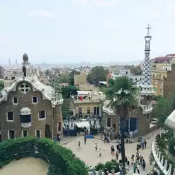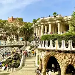 We wandered through the gardens, found shady corners under stone arches, and of course took photos on the famous serpentine bench 🐍 covered in bright mosaics with a killer view of the city (yes, you can spot Sagrada Família from here too!)