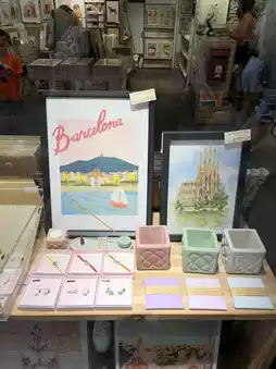 Mercilona is a charming gift shop in Barcelona that’s also open on Saturdays. It offers beautifully designed artwork, postcards, fridge magnets, and more. You'll also find a lovely selection of candles inspired by the patterns of Barcelona’s pavements, available in various colors and designs.